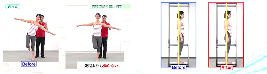 肩、股関節、骨盤を計30秒ほど施術すると、何事も無かったかのようにまっすぐ立てるようになったのです!