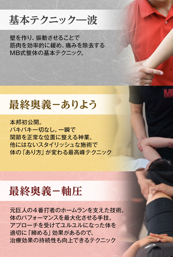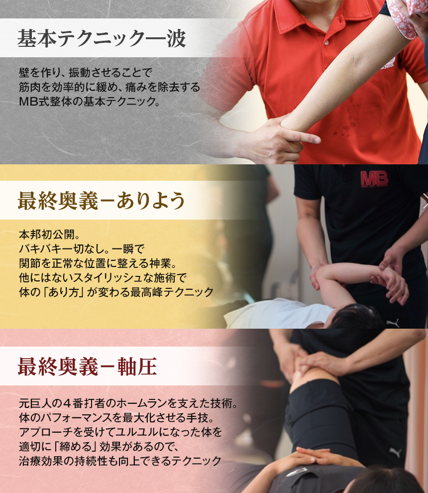 その結果生まれたのが現在のMB式整体の手技です。