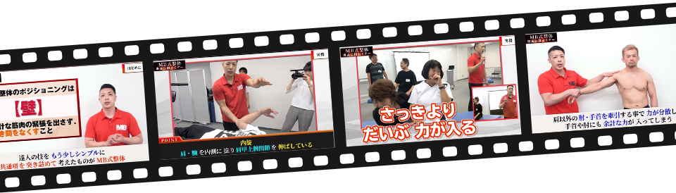 治療の達人の技術を誰でも使えるように普及することを目的に作られたMB式整体の最新テクニックは、世の中に出回っている手技教材とは比較にならないほどの高い再現性を誇ります。
