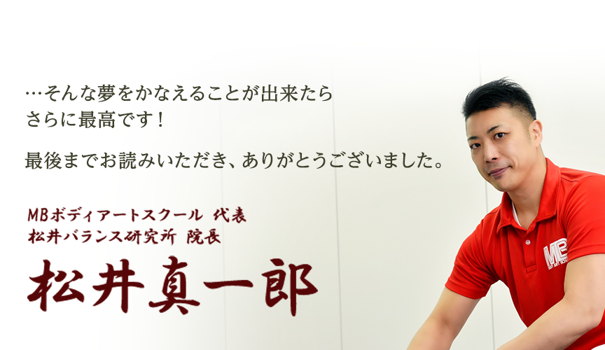私が昔そうであったように何か変わるきっかけを求めるすべての治療家が、MB式整体という強い治療の武器を携え、混迷の治療業界を勇ましく突き進んでいただければこれに代わる喜びはございません。