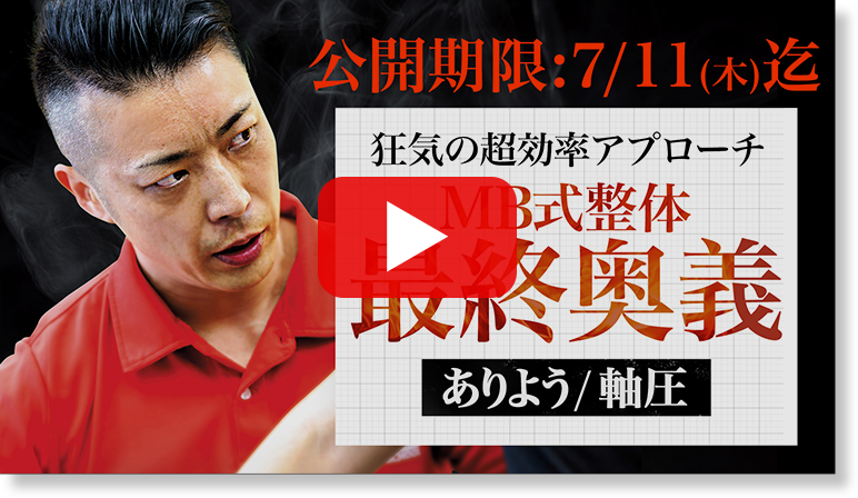 このMB式整体の最新テクニック、「ありよう/軸圧」は、7月11日(木)23:59を過ぎると公開終了となります。