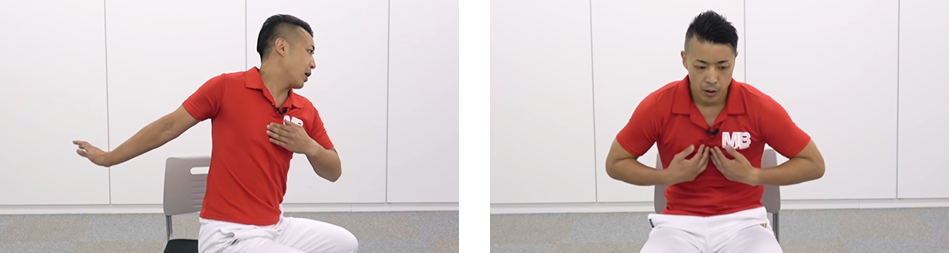 肩の手術の影響もあり、胸や脇の筋肉はガチガチ。
