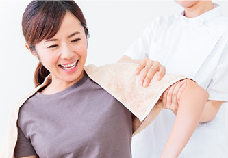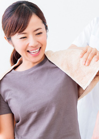 5~6年前から酷い肩痛に襲われ、服を脱ぐのもひと苦労していたとのこと。ブロック注射を打つも、1~2ヶ月で元の状態に戻ってしまうので、常に注射を打ち続けないといけない状態でした。