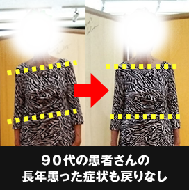 長年の痛みがあっけなく消えたことに、「生まれ変わったみたい!ぜんっぜん違う!」と、大変喜んでいただけました。