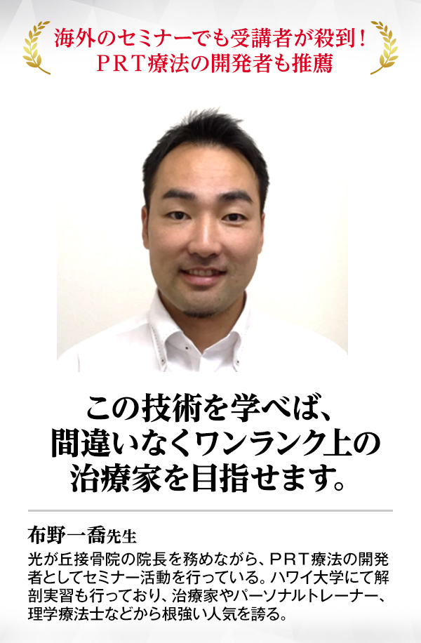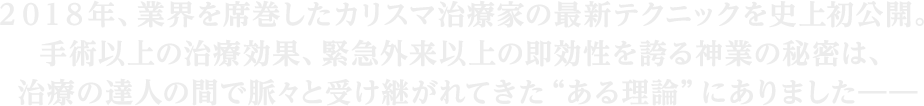 ぜひ、この手技の全貌を手に入れて、辛い症状に苦しむ患者さんを救っていただくことはもちろん、あなた自身も治療家として満ち足りた日々をすごしていただければこれ以上のことはありません。