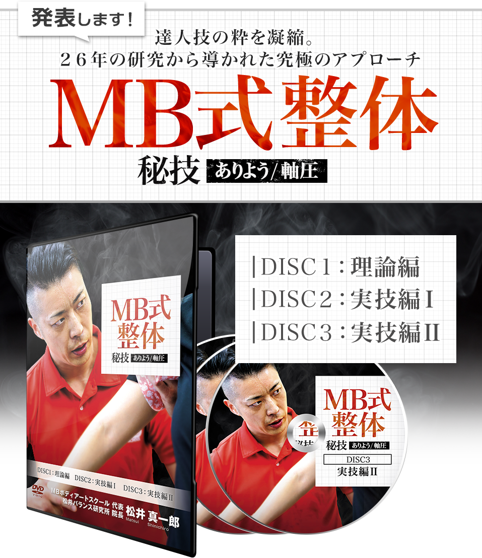| 26年の研究から導かれた究極のアプローチ 『MB式整体【秘技】ありよう/軸圧』DVD (監修:松井真一郎) |