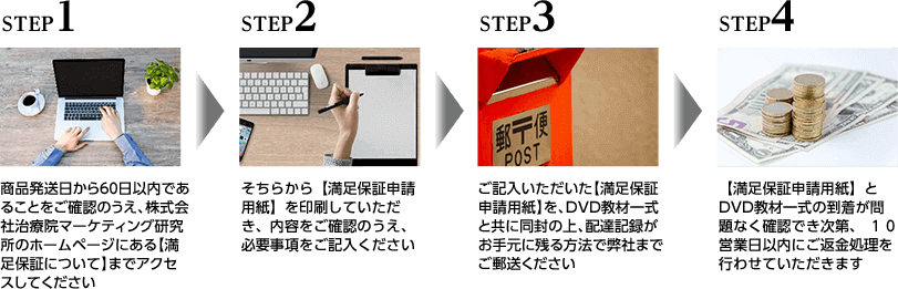 ※保証適応については、治療院マーケティング研究所のホームページにある専用ページ「満足度保証について」にてお手続きをお願い致します。
