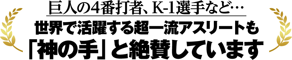 誰もが知っているトップレベルのアスリートからも絶大な支持を受ける治療法です。